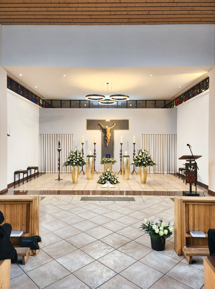Die Trauerfeier soll ein letztes Gedenken an den Verstorbenen in einem würdigen Rahmen ermöglichen. In der Regel findet die Trauerfeier direkt auf dem Friedhof in der zugehörigen Kapelle bzw. Kirche statt. Zusätzlich verfügen wir im Institut über einen kleinen Andachtsraum, in dem Trauerfeiern mit bis zu zwölf Personen stattfinden können.