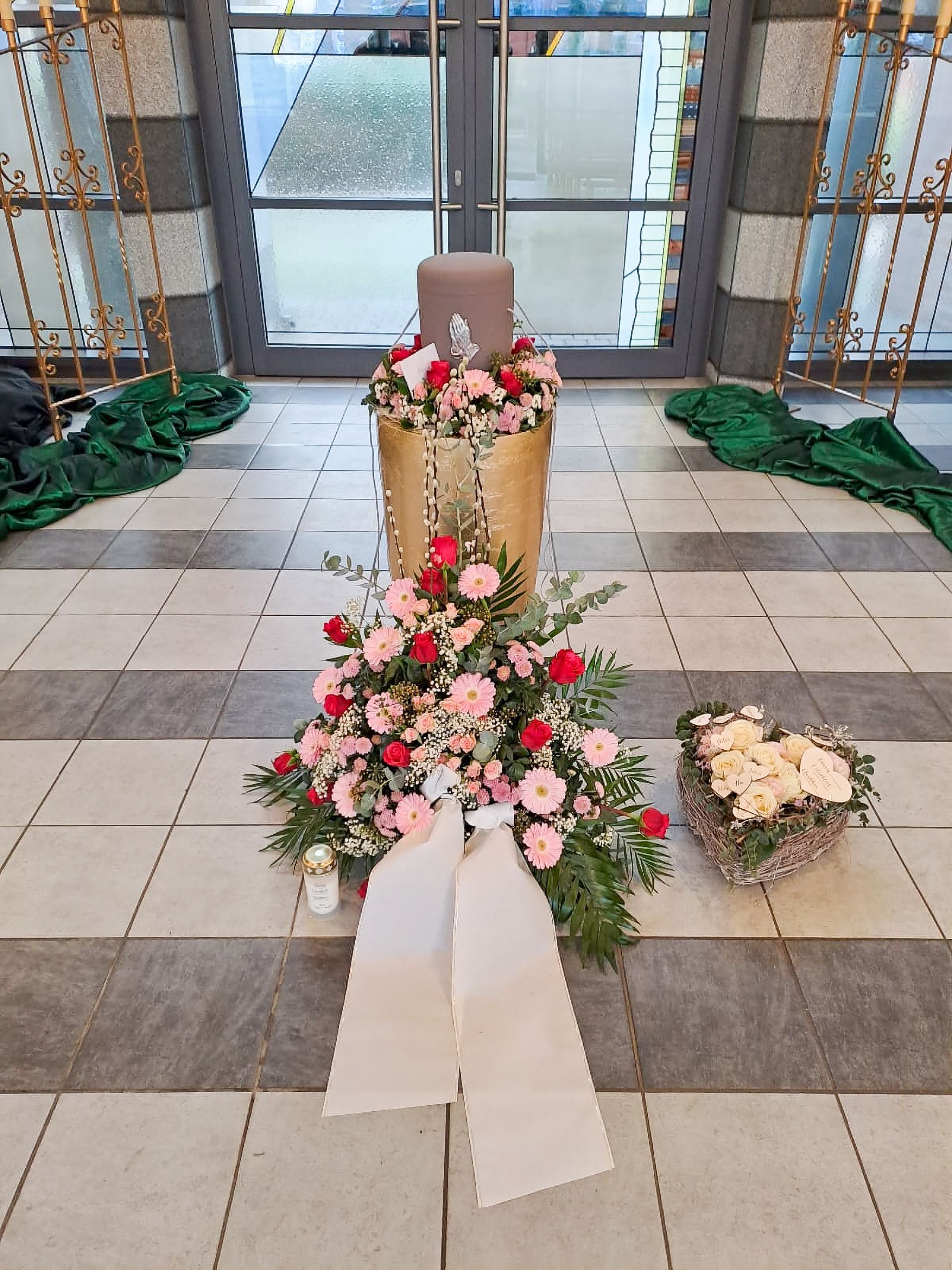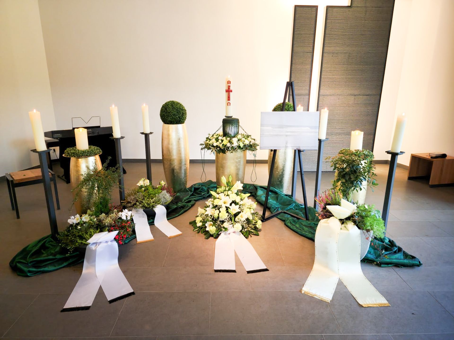 Die Räumlichkeiten werden dazu von uns dekoriert. Gerne arrangieren wir die Dekoration dabei auch ganz individuell mit einem unmittelbaren Bezug zum Leben, Beruf oder zu den Interessen des Verstorbenen. Ein Foto kann selbstverständlich auch aufgestellt werden.